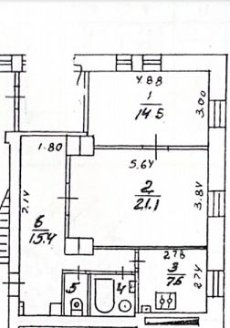 Жилая площадь комнат-21,1/14,5кв. М.