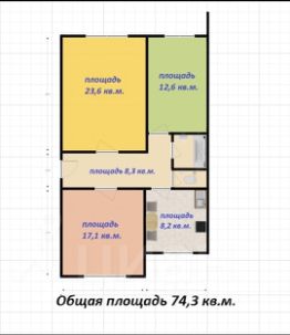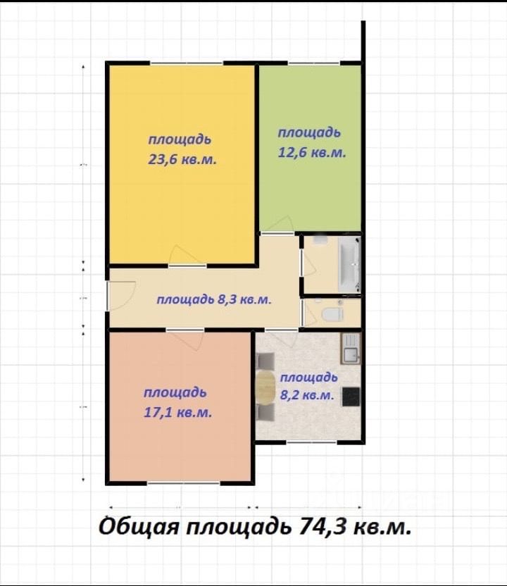Жилая площадь комнат-23,6/12,6/17,1кв. М.