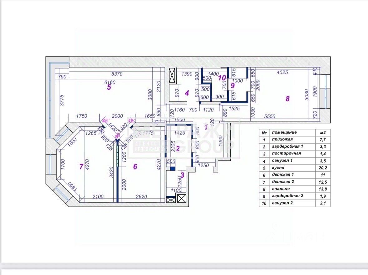 2 гардероба, 2 санузла, 3 изолированные комнаты, кухня-гостиная, балкон.
