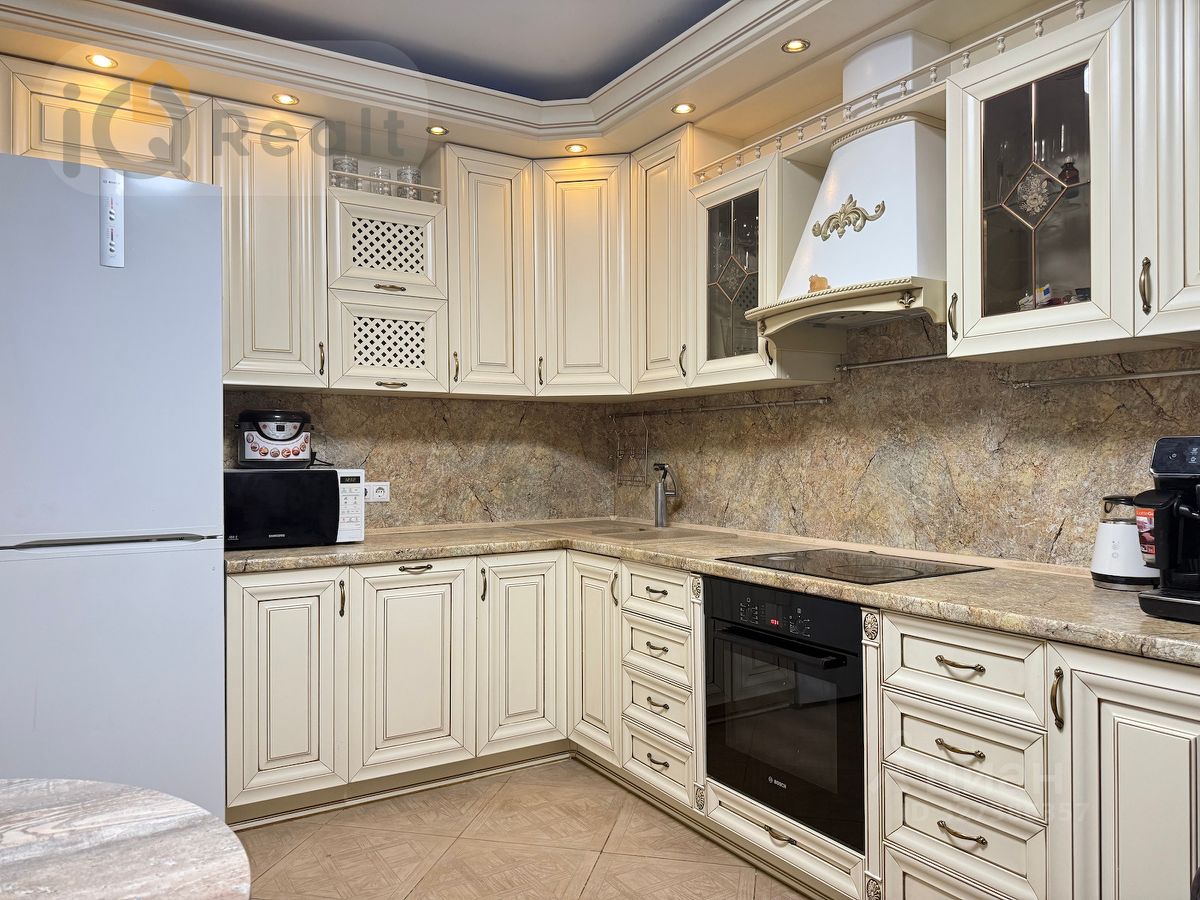 В квартире установлены: теплые полы, электрика разведена с установкой электрощита с автоматами, кондиционер. Дорогая кухня из массива дерева.