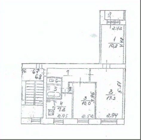 Кирпичный дом, 8 этаж. Общая площадь составляет 28,1 кв. м, из которых 17,3 кв. м и 10,8 кв. м — площадь комнат, а 7,2 кв. м — кухня. Высота потолков — 2,6 м. Есть лоджия.