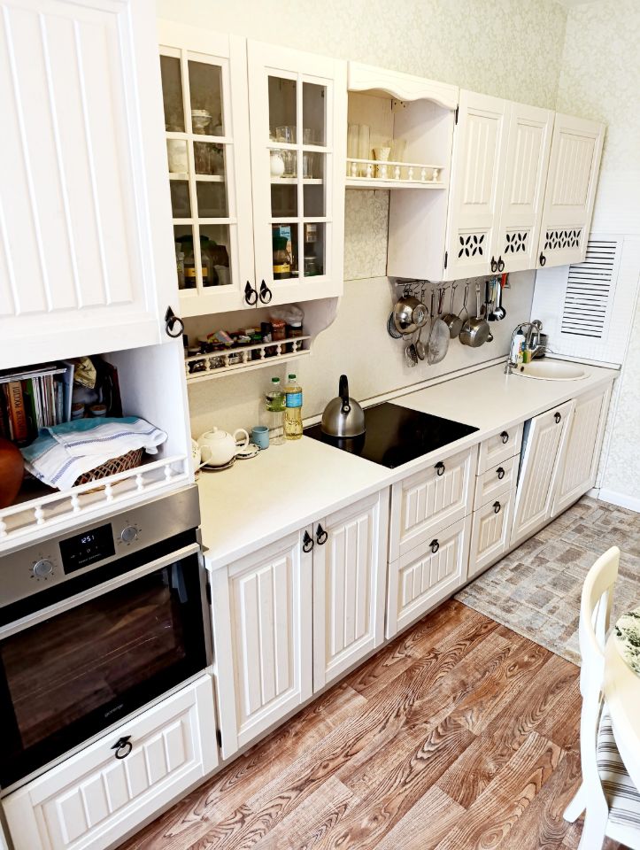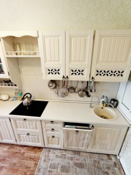 Данная квартира не требует вложений,с косметическим ремонтом, чистая, уютная. Потолки покрашены импортной водоэмульсионной краской. Сантехника, раковины, ванна Рокко, встроенная кухня со светлым фасадом, в стиле прованс от фабрики "Любимый дом" Амели. На кухне установлен Аквафор-питьевая вода.