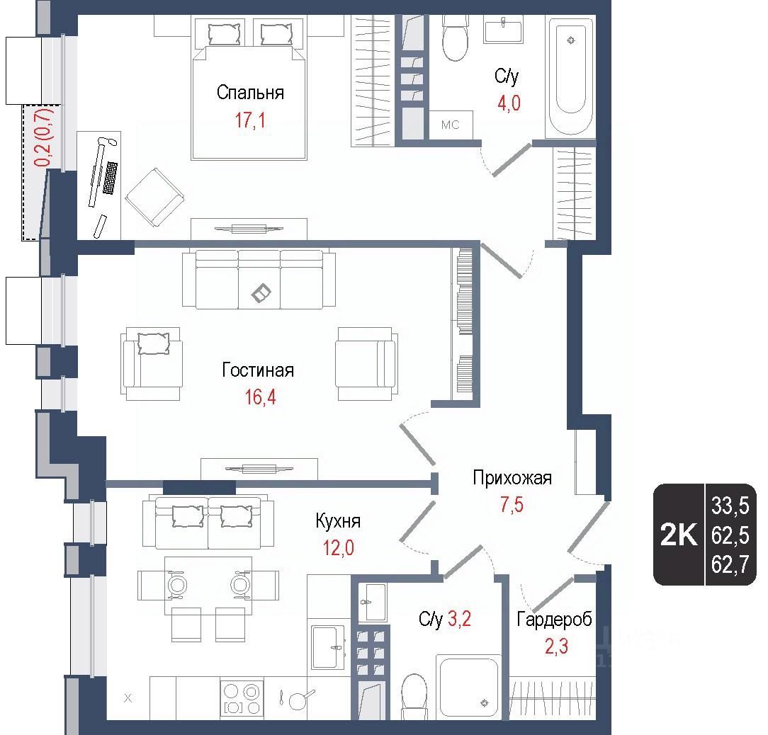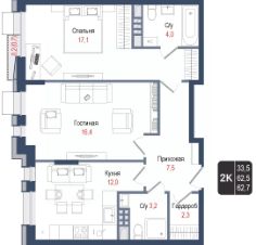 Продается 2-комнатная квартира 228 в строящемся ЖК "КИНОКВАРТАЛ", Корпус 1. Квартира расположена на 3 этаже, общая площадь 62,5 кв.м.