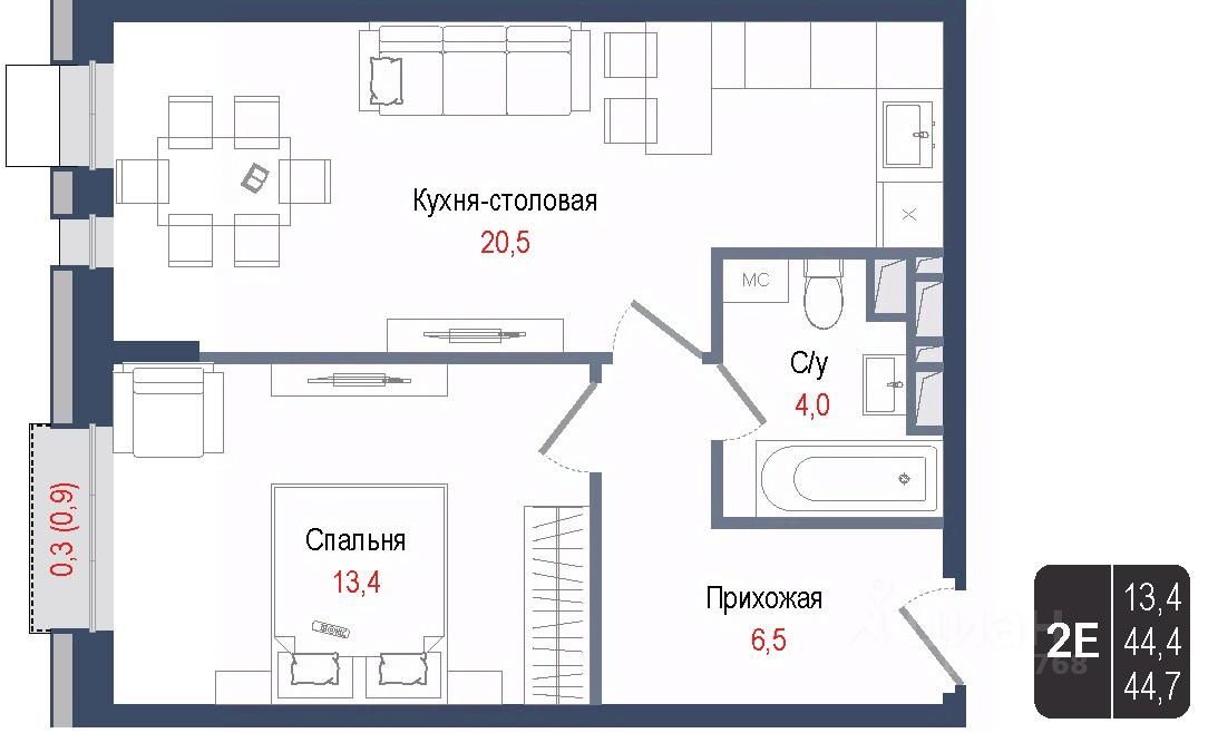 Продается 2-комнатная квартира 66 в строящемся ЖК "КИНОКВАРТАЛ", Корпус 1. Квартира расположена на 3 этаже, общая площадь 44,4 кв.м.