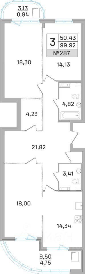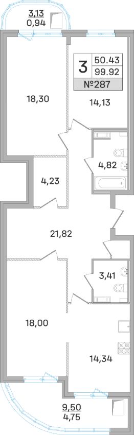 Продаётся 3 - комнатная квартира в готовом доме (Калинина, 11), срок сдачи: Дом сдан, общей площадью 99.90 кв.м., на 18 этаже.