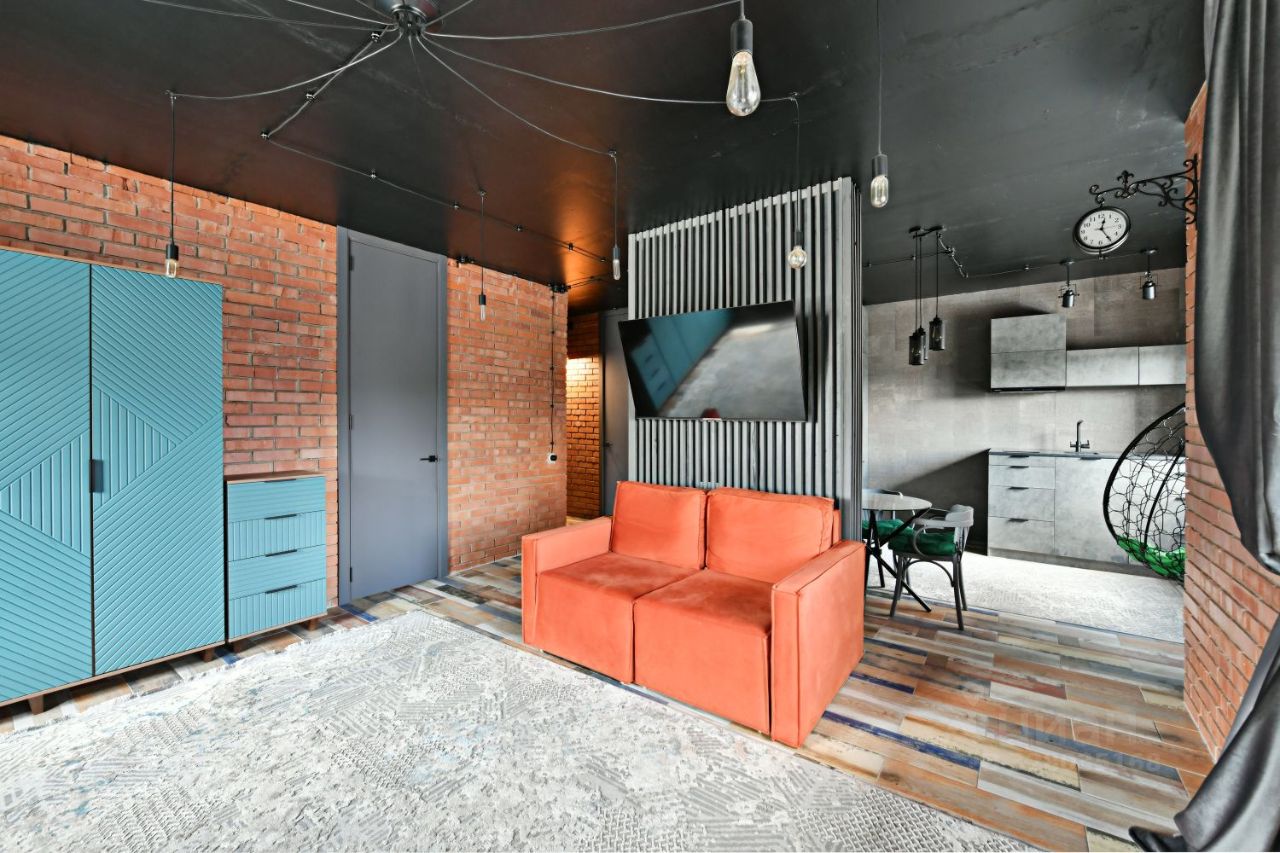 Квартира выполнена в стильном лофт-дизайне с использованием качественных материалов от ведущих производителей. Предусмотрены услуги консьержа, видеонаблюдение и видеодомофон.