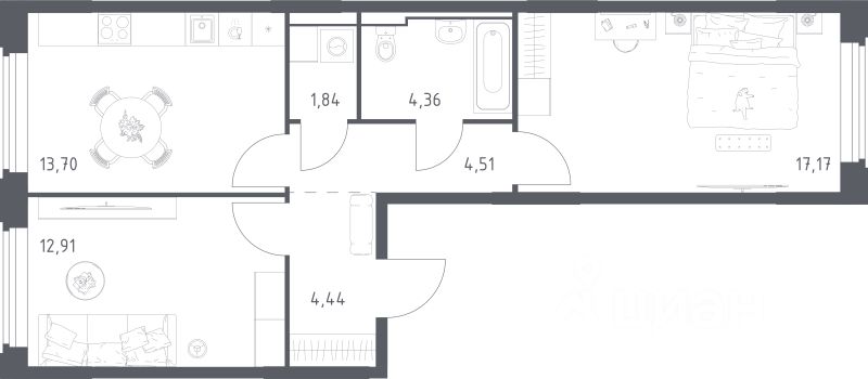 Продуманные планировки от небольших студий до просторных 4-комнатных квартир с гардеробной, постирочной и гостевым санузлом. Отделка на выбор: готовая, White Box или вариант без неё.