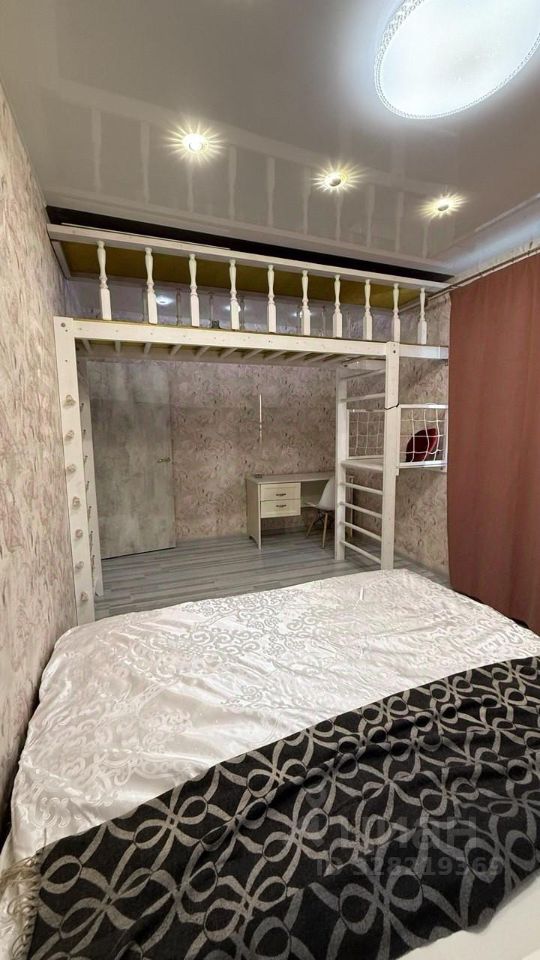 Две полноценные изолированные комнаты. В главной спальне — двуспальная кровать с подъёмным механизмом, высокое мягкое панно с зеркалами и отдельная вместительная гардеробная: ничего лишнего на виду, порядок поддерживать легко. Детская спроектирована дизайнером: встроенная кровать, рабочее место, шкафы — всё входит в стоимость и остаётся новым владельцам.