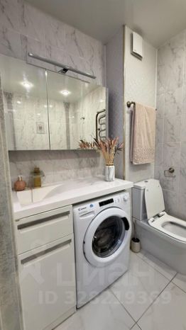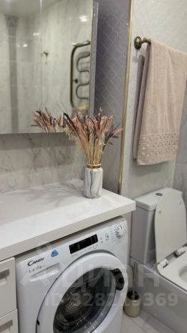 Санузел — в современном керамограните под мрамор: угловая ванна, качественная сантехника, гигиенический душ, тёплый пол, встроенный шкаф с раковиной и стиральной машиной. Квартира не требует ни копейки вложений — вы просто заносите вещи и живёте.