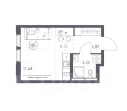 22,85 м² жилая зона 10,48 м² кухня 5 м²