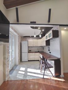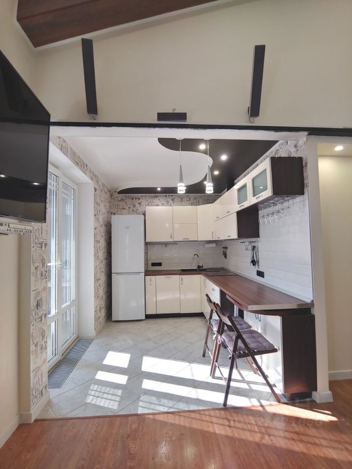 Окна (ПВХ) двор (юго-запад). ). Состояние отличное, дизайнерский евроремонт из качественных импортных материалов. Произведена замена всех инженерных коммуникаций, окон и отопления. Пространство квартиры: кухня гостиная плюс антресольный этаж спальня. Вся мебель и техника остаются, телевизор по договорённости