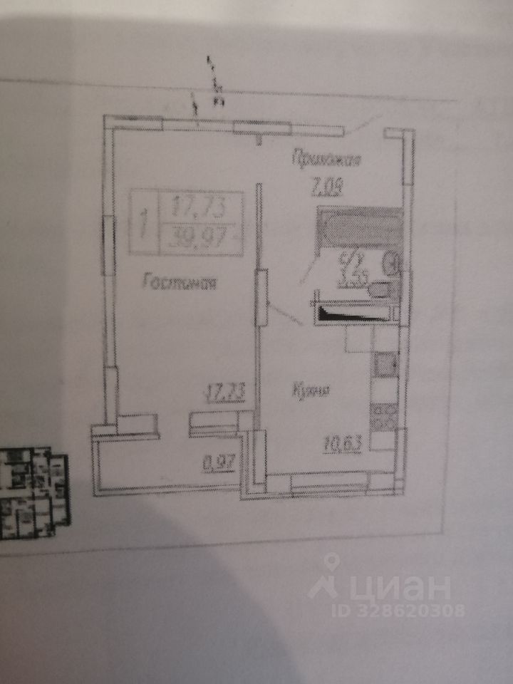 Общая площадь 40, 2 м, Площадь комнаты - 17,4 м.