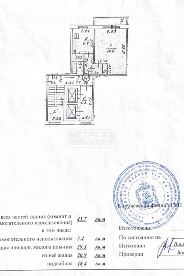 В продаже однокомнатная квартира в Королеве на проспекте Космонавтов, 8Б. Площадь квартиры вместе с балконом 41,7 кв. М.