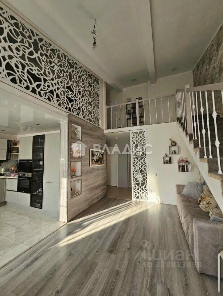 Квартира двухуровневая общей площадью 100 кв. метров: первый уровень - современная оборудованная кухня 14 кв. метров, просторная гостиная, светлая комната, ванная и отдельный санузел, гардеробная при входе; второй уровень - две уютные спальни, санузел.