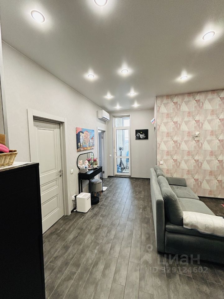 Спальня 9м, проходная гостиная зона 17м, ванная комната 4м, балкон 3м, кухня 12м. В доме подземный паркинг, консьерж, видеонаблюдение.