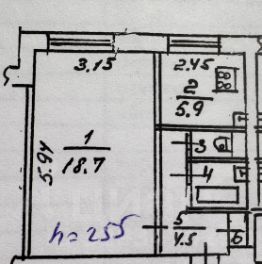 Общая площадь 32,4 м2, комната 18,7 м2, кухня 6м2.