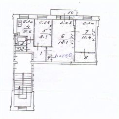 Квартира расположена на 4 этаже 5-этажного панельного дома. Общая площадь составляет 55 кв. м (без учета площади балкона), из которых 37,8 кв. м — жилая площадь, 5,6 кв. м — кухня. Так же в квартире предусмотрена кладовка. Две комнаты (8,3 кв. м и 11,4 кв. м) изолированы, гостиная 18,1 кв. м - продолжается выходом на балкон и имеет вход в спальню. Все окна квартиры выходят в живописный зеленый двор.