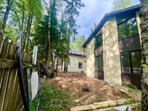 ПВХ окна с двойным стеклопакетом. На полу плитка и ламинат, стены подготовлены под покраску либо под поклейку обоев. Санузлы отделаны плиткой, натяжные потолки. В бойлерной установлен котел и насосная станция с фильтром. Система отопления разведена по всему дому. Теплые полы проведены по всему первому этажу. Вся электрика проведена и розетки выведены. Металлическая дверь с отсекателем холода. Деревянная лестница. Снаружи дом отделан цокольным сайдингом под камень. Крыша покрыта натуральной металлочерепицей и утеплена. Въезд для авто. Откатные ворота.