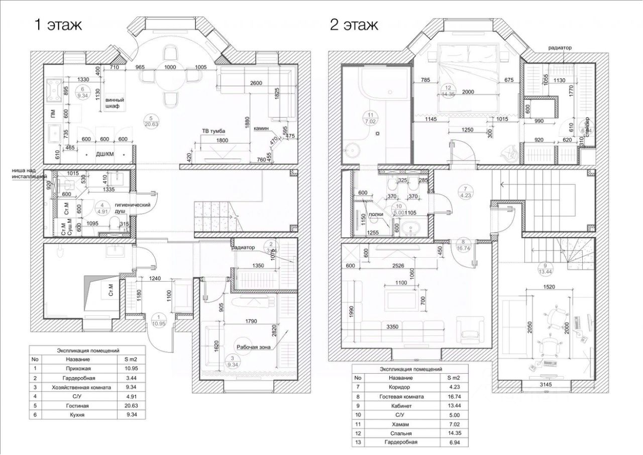 2 этаж — коридор, санузел, хамам, две комнаты, гардеробная, двухуровневый кабинет.