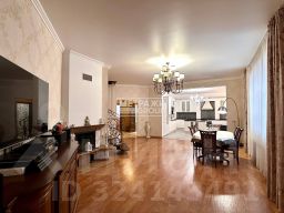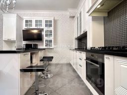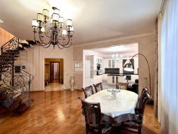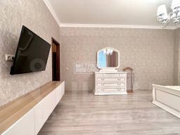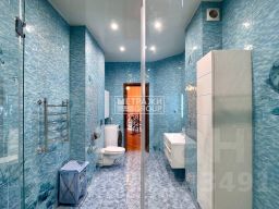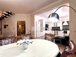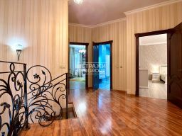 Внутреннее пространство дома продумано до мелочей: пять комнат, включая впечатляющую кухню площадью 90 квадратных метров, два совмещённых санузла. Особое внимание заслуживает высококачественный ремонт, выполненный с использованием премиальных материалов.