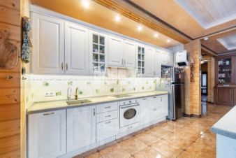 Дом площадью 300 кв. м. , построен из клееного бруса, полностью готов к проживанию. Дом полностью оснащен всеми коммуникациями, а так же дополнительно везде установлены кондиционеры и система уровня т\влажности внутри помещения. Фундамент под всеми строениями ж\б плита, все строилось не для продажи.
