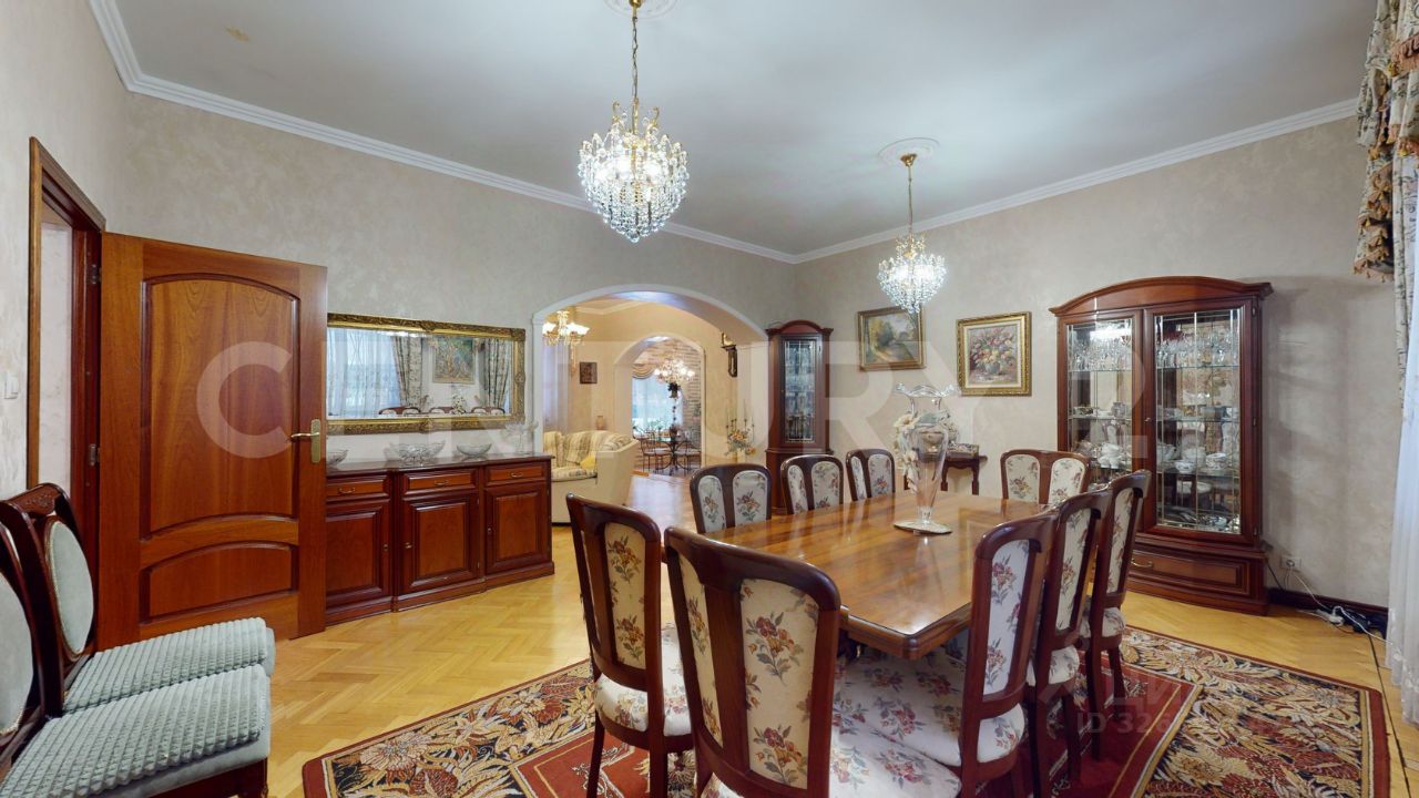 Семь просторных спален, 5 санузлов, 2 гостиные с каминами, кухня-столовая.