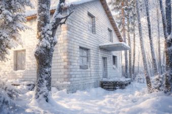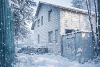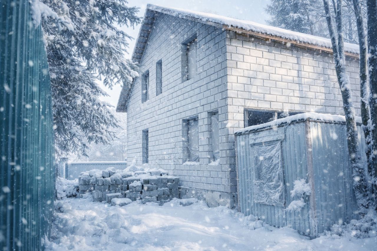 Дополнительно на участке имеются строительные материалы для внутренних перегородок и дерево для второго этажа, а также бытовка для строителей.