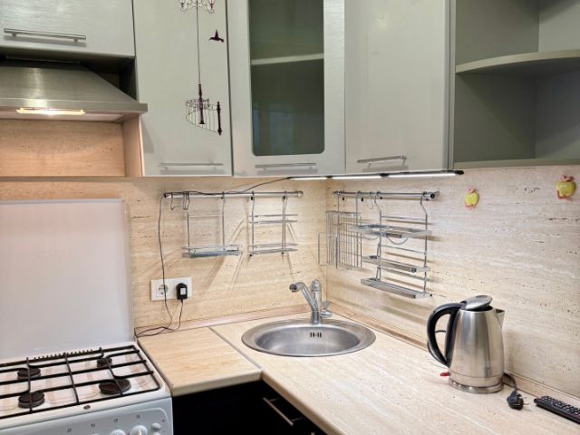 Сдаётся уютная 1-комнатная квартира со свежим ремонтом на 8-м этаже 9-этажного кирпичного дома в самом центре Королева рядом с парком. Хорошая транспортная доступность: 20 минут на автобусе или автомобиле до метро ВДНХ и Медведково, 10 минут пешком до станции Подлипки Дачные, 2 минуты пешком до автобусной остановки. В квартире есть все для комфортного проживания: удобная прихожая, раскладной диван-кровать, стиральная машина, телевизор, два стола, большая стенка со множеством полок, шкаф; на кухне кухонный гарнитур, газовая плита с духовкой, холодильник, посуда. Большая утепленная лоджия 6,5 квадратных метра, с освещением, которую можно использовать как отдельную комнату. Красивый вид из окон во двор - на город и школу. Весь район обжитой, зелёный, без строек и промзон. Совмещенный санузел, чугунная ванна. Проведен интернет. Есть пассажирский лифт, мусоропровод. Особенности квартиры: очень теплая (зимой хорошая подача тепла), солнечная сторона. Спокойные, доброжелательные, порядочные соседи на лестничной клетке. В пешей доступности: Центральный городской парк с детскими площадками и аттракционами, центральная площадь, Центральный Дом культуры, где проводятся концерты и много мероприятий, национальный парк Лосиный остров, спортивный стадион, спортивная школа, Ледовый дворец, фитнес-клуб с бассейном, магазины Магнит, Пятерочка, Чижик, Ашан и др., рестораны, кофейни, взрослая и детская поликлиники, центральная больница. Рядом с домом современный, новый, построенный в этом году корпус школы номер 1. Также в пешей доступности еще две школы и несколько хороших детских садов. К дому прилегает детская библиотека, где для детей есть много бесплатных и платных кружков (шахматный кружок, театральная студия, ИЗО, подготовка к школе и др.), а также мастер-классы для взрослых. Рядом лучшая в московской области детская хоровая школа им. Б.А. Толочкова, музыкальная, художественные школы, школы танцев, Центр развития творчества детей и юношества. Сдам квартиру на длительный срок аккуратным некурящим людям или семье, без животных. Оплата: аренда 38 000 руб. + платежка ЖКУ (5-7 тыс. в месяц и залог 38 000 руб. Без комиссии. Оперативный показ. Снять 1-комнатную квартиру на улице Кирова в городе Королев на длительный срок.