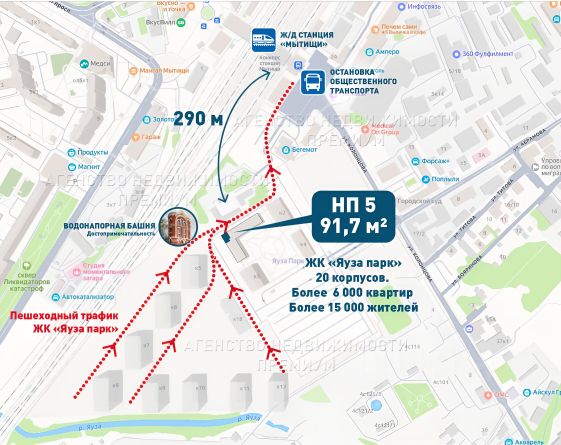 СДАЕТСЯ ОТЛИЧНОЕ ПОМЕЩЕНИЕ площадью 91,7 м2 на 1 этаже, с возможностью объединения соседней площади до 174,6 м2. Успех любого вашего бизнеса обеспечит УНИКАЛЬНОЕ РАСПОЛОЖЕНИЕ ДАННОГО ПОМЕЩЕНИЯ. Большая часть пешеходного трафика всего ЖК Яуза парк в сторону Ж/Д станции Мытищи (не более 3 минут ходьбы!) и остановок общественного транспорта будет проходить вдоль фасада здания перед вашими широкими витринами. ДОПОЛНИТЕЛЬНЫМ ЦЕНТРОМ ПРИТЯЖЕНИЯ ваших посетителей станет сердце жилого комплекса - уникальное общественное пространство, которое будет создано вокруг отреставрированной водонапорной башни XIX века прямо напротив вашего помещения. Ваш бизнес будет заметен всем жителям и гостям квартала за счет УГЛОВОГО РАСПОЛОЖЕНИЯ ПОМЕЩЕНИЯ, БОЛЬШОГО РЕКЛАМНОГО ПОТЕНЦИАЛА И ШЕСТИ ШИРОКИХ ПАНОРАМНЫХ ОКОН, выходящих на первую линию ЖК и пешеходный бульвар. Вы сможете привлечь максимум клиентов, разместив большие рекламные вывески на СМОТРЯЩЕЙ НА ДВЕ СТОРОНЫ ПРОТЯЖЕННОЙ ФАСАДНОЙ ЧАСТИ ВАШЕГО ПОМЕЩЕНИЯ. Автолюбители тоже станут вашими клиентами! ВЫСОКИЙ ТРАФИК, УДОБНЫЙ ПРОЕЗД И ПАРКОВКИ ВДОЛЬ ФАСАДА увеличат количество ваших посетителей и обеспечат удобство разгрузки. Планировка помещения будет удобной и рациональной. ПРАВИЛЬНАЯ ФОРМА ПОМЕЩЕНИЯ позволит вам сделать это. Размах вашего бизнеса требует большего простора? Объедините это помещение с соседним! В вашем распоряжении будет площадь в 174,6 м2. Помещение имеет отдельный вход с основного фасада на уровне земли без порогов и ступеней. Высота потолков 4,48 м. Эл. мощность 19 кВт, 380В - 3 фазы, с возможностью увеличения. В помещении предусмотрены мокрая точка (горячая и холодная вода, канализация), отопление и вентиляция. Помещение расположено на первом этаже жилого дома нового ЖК Яуза парк от группы ПИК. ЖК расположен рядом с ж/д станцией Мытищи и будет состоять из 20 жилых корпусов (более 6000 квартир, более 15000 жителей), нескольких детских садов, школы, поликлиники и современных многоэтажных паркингов. Часть квартир продаётся с готовой отделкой, что ускорит процесс заселения. На территории ЖК будет просторный пешеходный бульвар, уникальное общественное пространство с доступом к Wi-Fi и благоустроенная набережная реки Яуза. Вблизи жилого квартала появятся шумопоглощающие экраны, которые защитят от шума ж/д путей. Коммунальные и эксплуатационные платежи оплачиваются отдельно! Отлично подойдет практически под любой вид деятельности. Торопитесь, такое предложение уйдет с первого показа! Данное предложение действует до момента получения ключей, после цена будет подниматься! Звоните, уважаемые клиенты и коллеги! Все подробности по телефону.